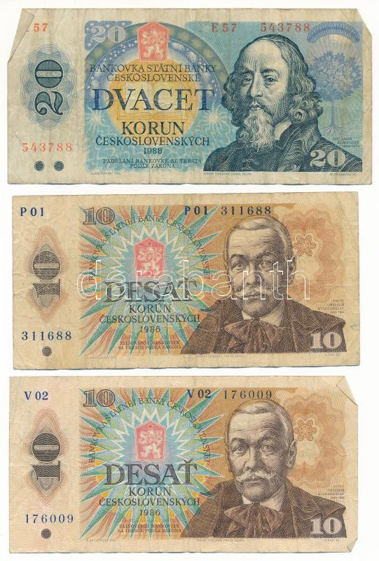 Czechoslovakia 1986. 10 Korun (2x) + 1988. 20 Korun C:F,VG