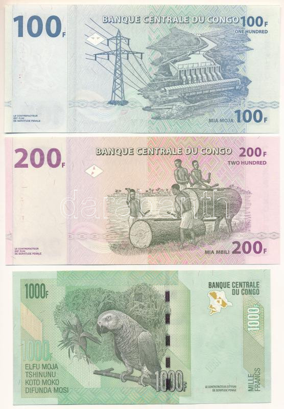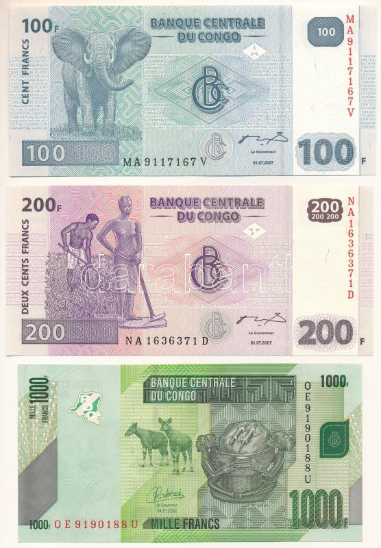 Kongói Demokratikus Köztársaság 2007. 100Fr + 200Fr + 2022. 1000Fr T:UNC