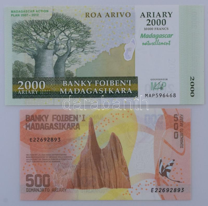 Madagascar ND (2017) 500 Ariary + ND (2007) 2000 Ariary / 10.000 Francs "MAP 596468" "Madagascar Action Plan" commemorative issue C:UNC