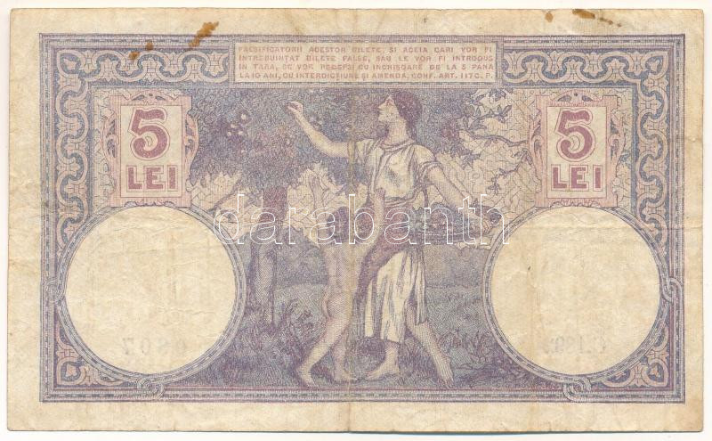Románia 1920. 5L "Románia 1920. 5L "C.1892 0807" T:F,VG fo.