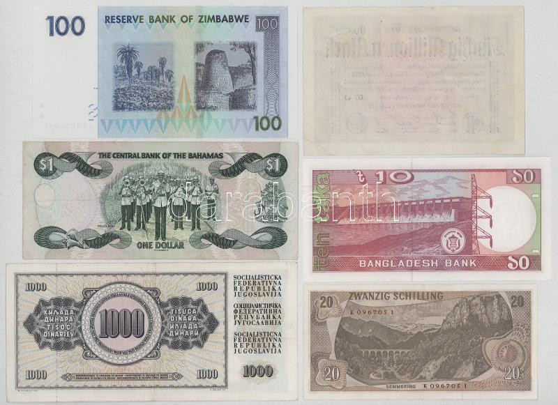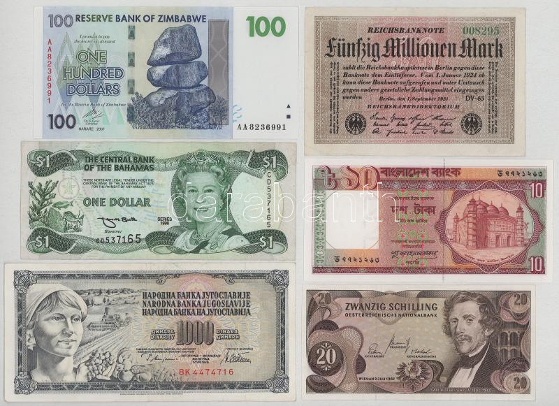 Vegyes, 6db-os bankjegytétel, benne: Ausztria, Jugoszlávia, Zimbabwe, Bahamák, Banglades, Német Birodalom T:vegyes