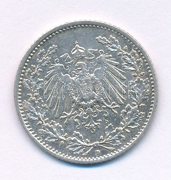 German Empire 1915D 1/2 Mark Ag C:VF patina