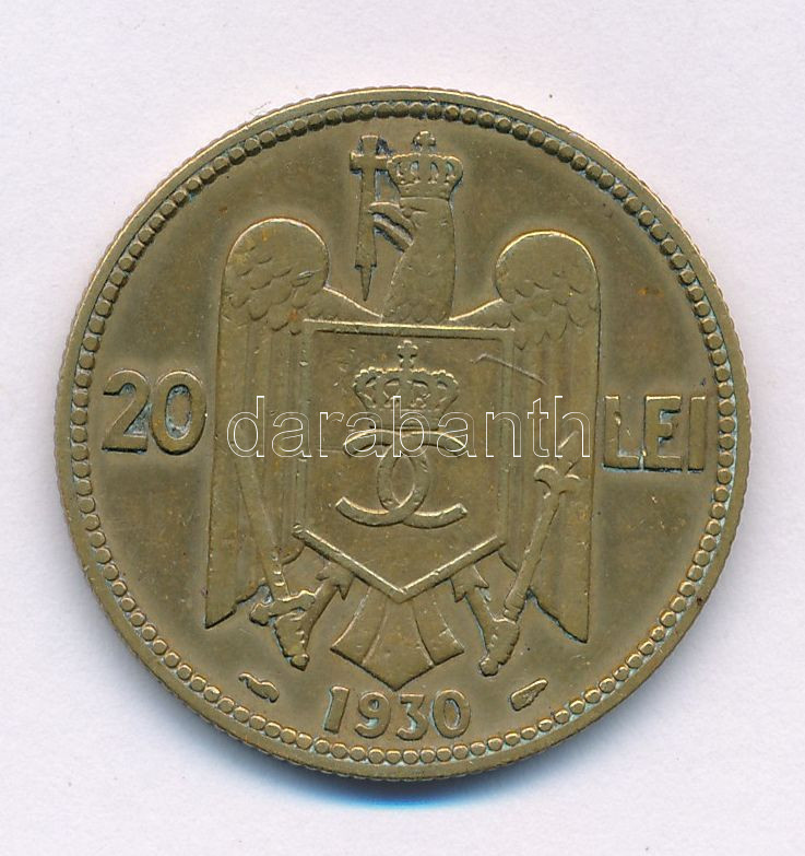 Románia 1930. 20L Ni-sárgaréz "II. Károly" T:XF,VF patina