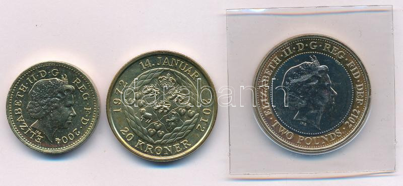 Vegyes forgalmi emlékkiadás tétel, benne: Nagy-Britannia 2004. 1P Ni-sárgaréz "Forth Bridge", 2012. 2P Cu-Ni/Ni-sárgaréz "Charles Dickens"; Dánia 2012. 20K Al-bronz "II. Margit királynő uralkodásának 40. évfordulója" T:UNC,AU
