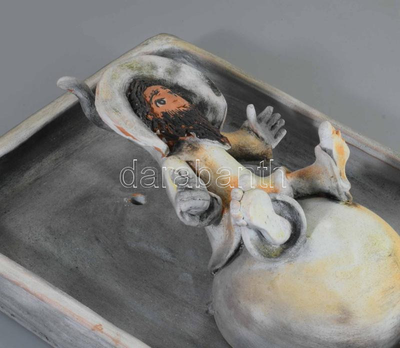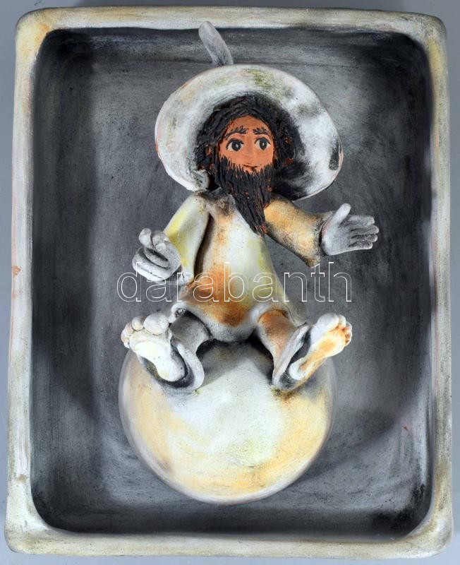 Jambrich Liza (1955): Fityiszt mutató manó (Magyar Írók Egyesületének díja, 2004). Kerámia, akasztható, 31x25 cm