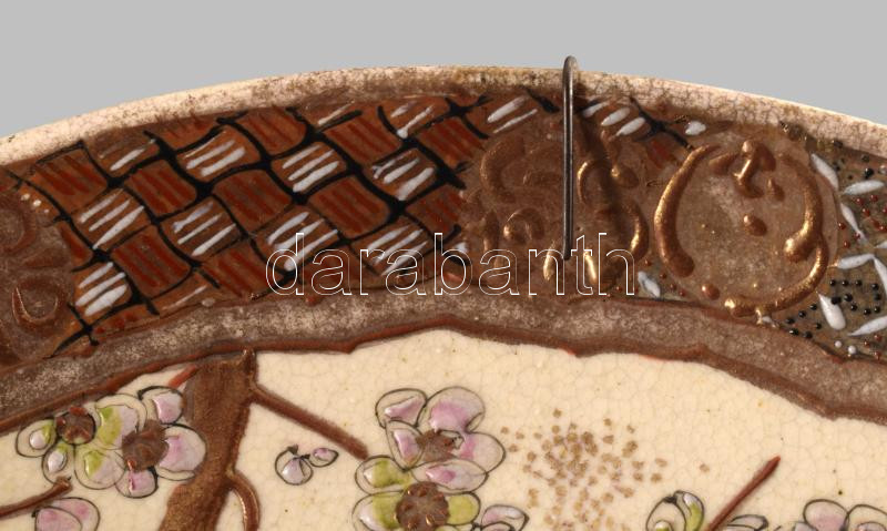 cca 1860-1880 Satsuma szamuráj mintás dísztányér. Japán, Meidzsi-kor, jó állapotban, d:31 cm