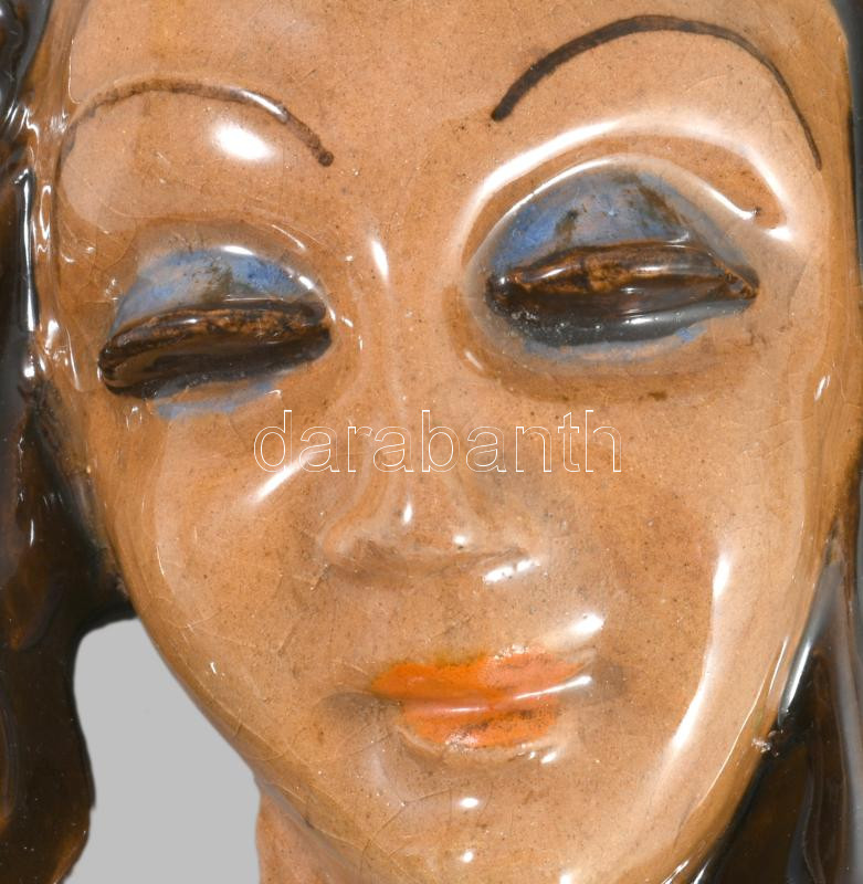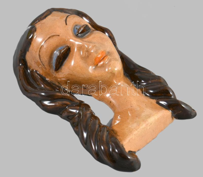 cca 1930 Horváth Sándor kerámia női fej falidísz, jelzett, címkével jelzett, hibátlan, 19x11 cm