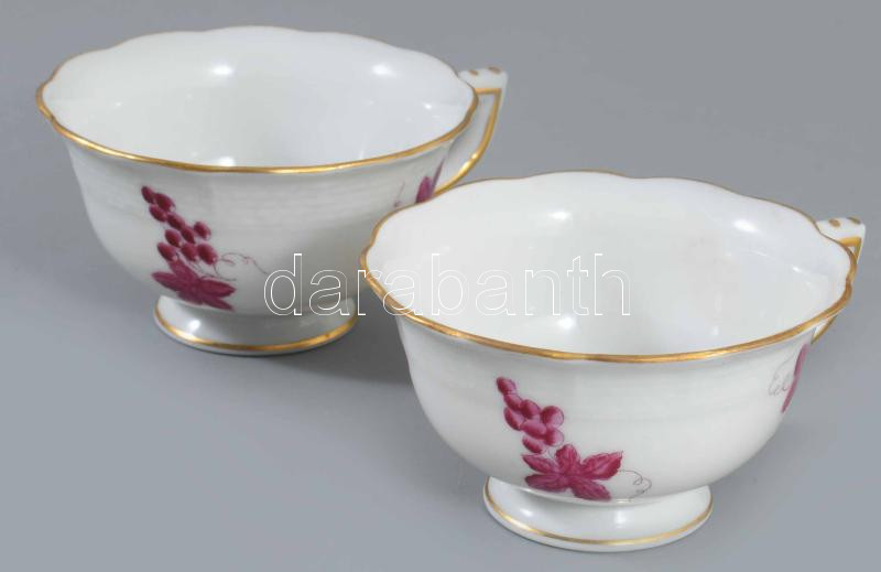 1939 Herendi 2 darab lila szőlőfürt mintás csésze. Jelzett, hibátlan, d: 7,5 cm