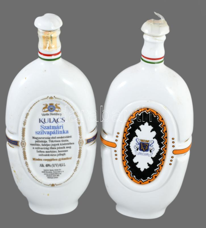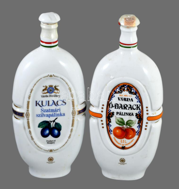 2 db Hollóházi porcelán flaska, Matricás, jelzett, hibátlan 26 cm