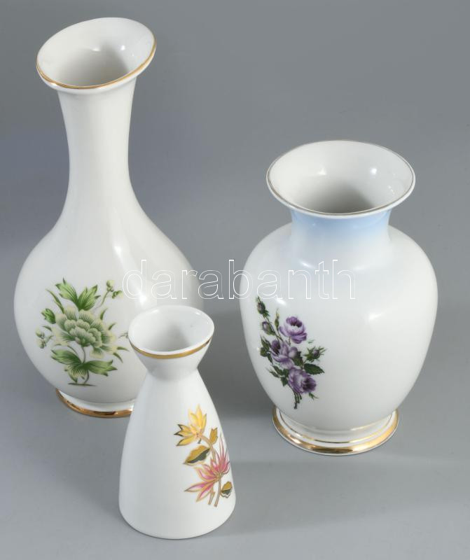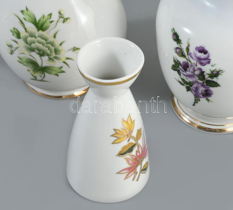 3 darab Hollóházi és Aquincum váza, jelzett, hibátlan, m: 20 cm alatt