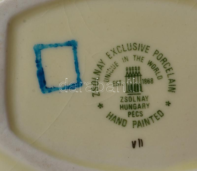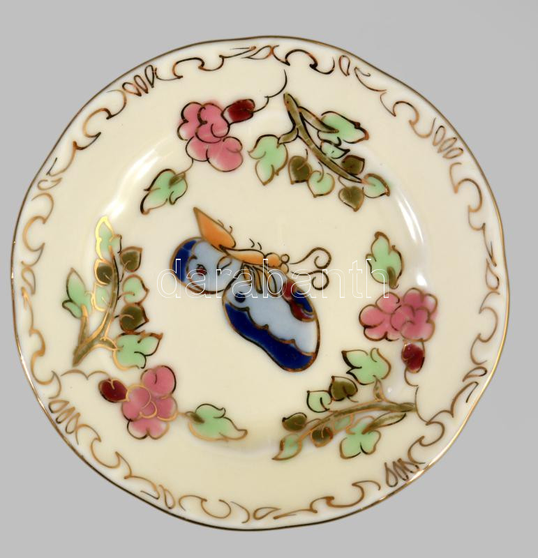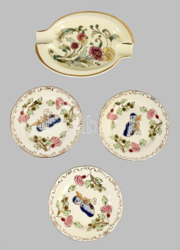 4 db Zsolnay pillangó mintás tálka kézzel festett jelzett, hibátlan d: 9 cm, 12x9 cm,