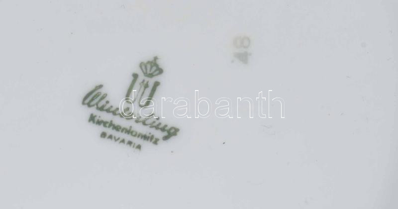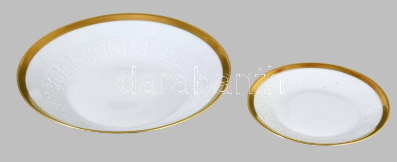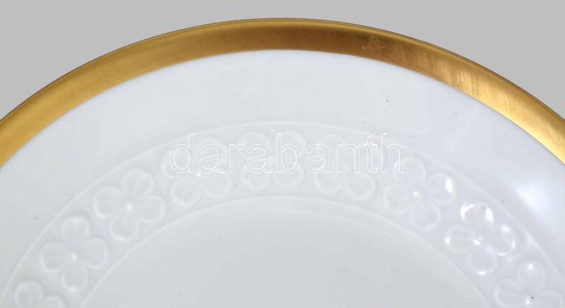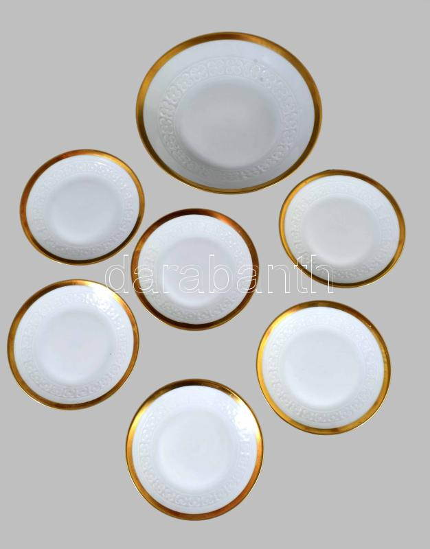 Bavaria plasztikus virágmintás aranyozott 6 személyes pralinékínáló, jelzett, minimális kopással, d: 12,5-19 cm