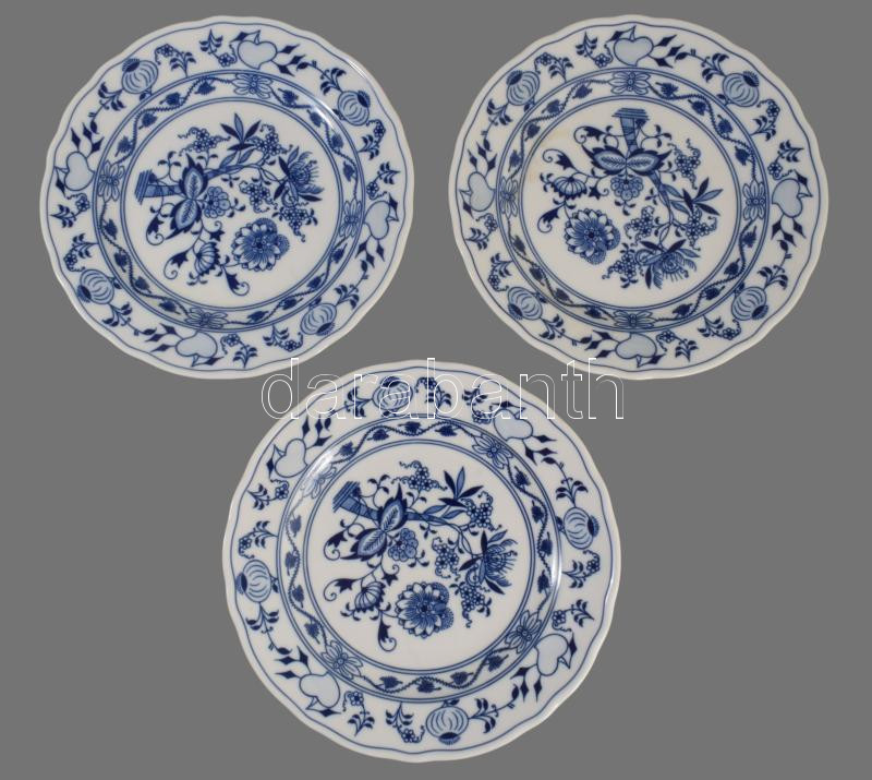 Dubi Bohemia 3 darab hagymamintás lapostányér, jelzett, minimális kopással, d: 24,5 cm