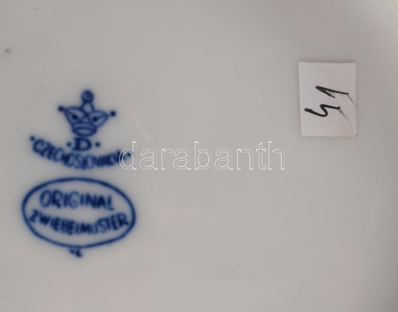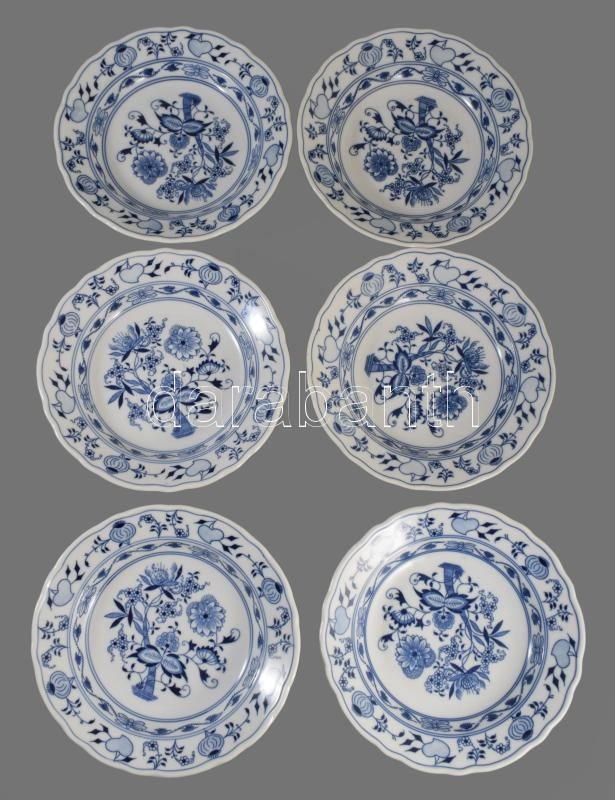 Dubi Bohemia 6 darab hagymamintás mélytányér, jelzett, hibátlan, d: 24 cm