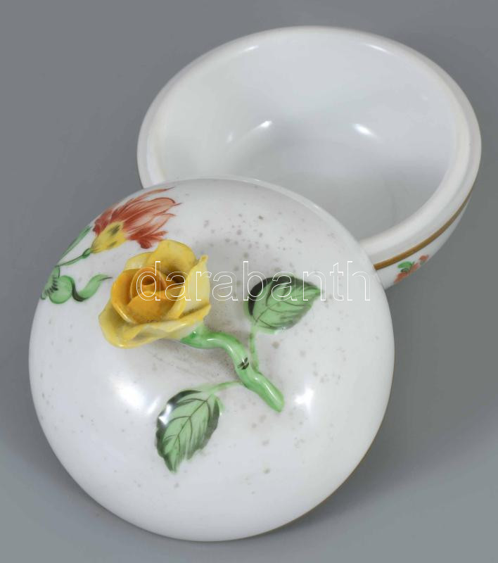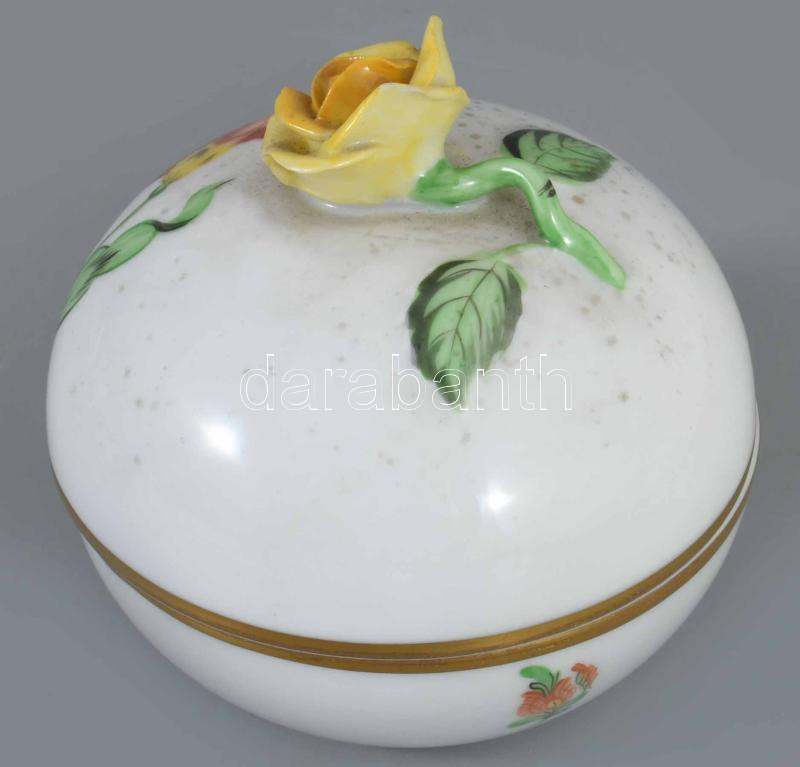 Herendi Kitty mintás bonbonier, rózsán minimális pattogzással, d: 7,5 cm