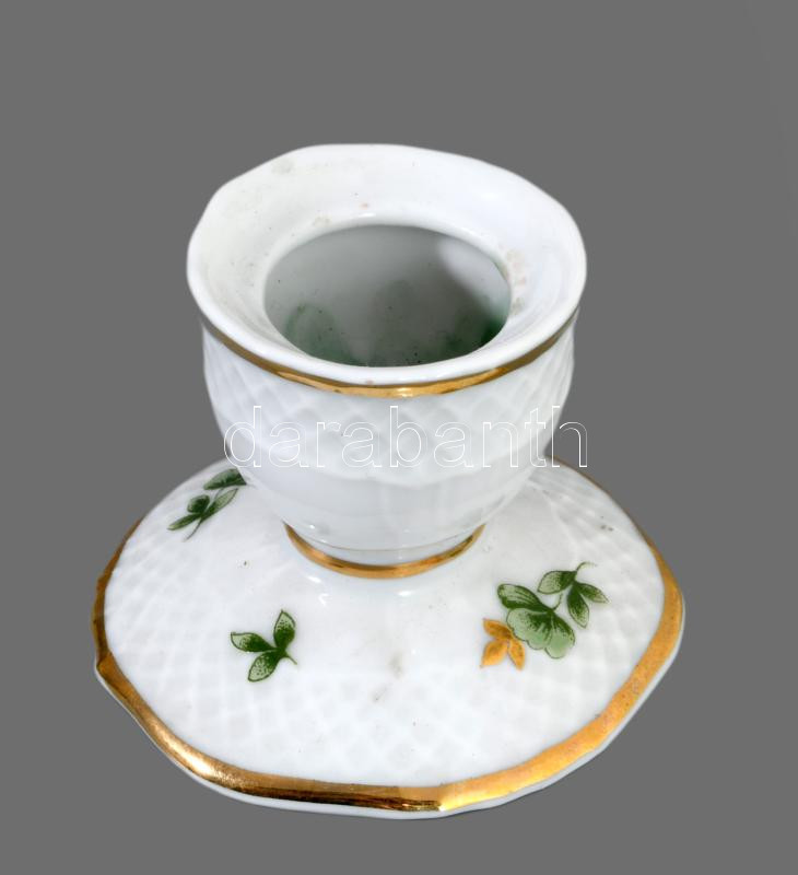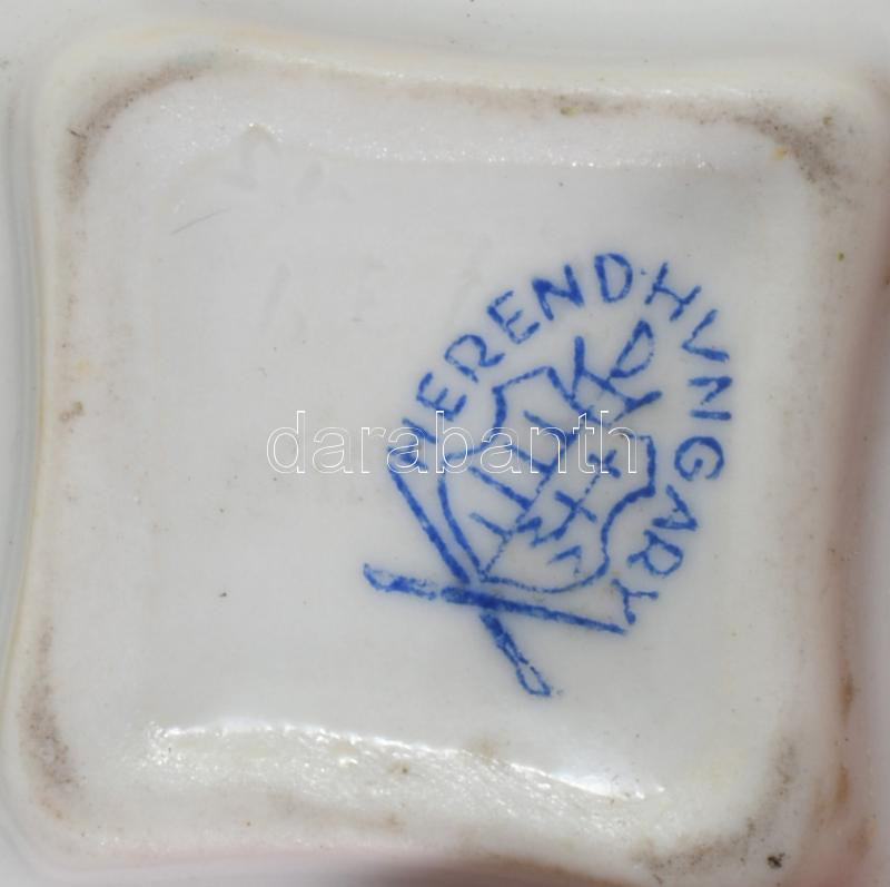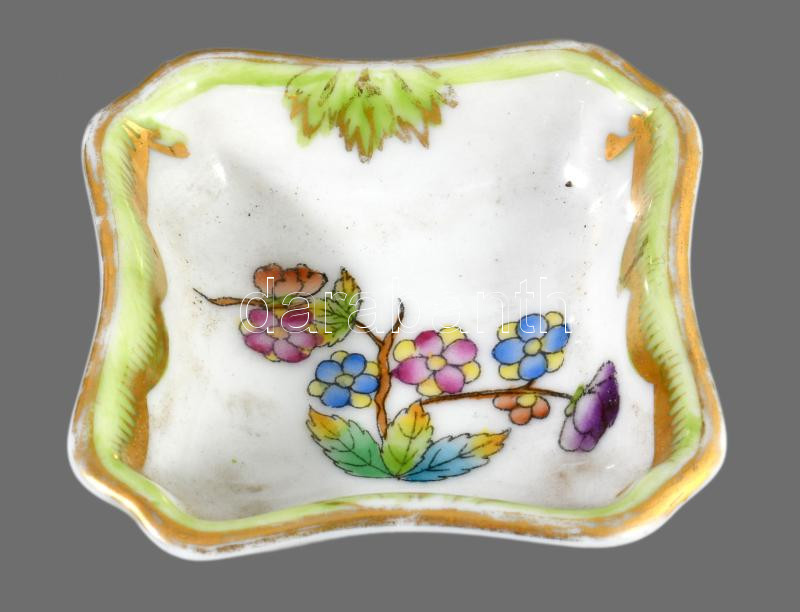 Herendi, Meisseni, Hollóházi porcelán kis tárgyak 3 db, a Meisseni bombonnieren, kis lepattanás.