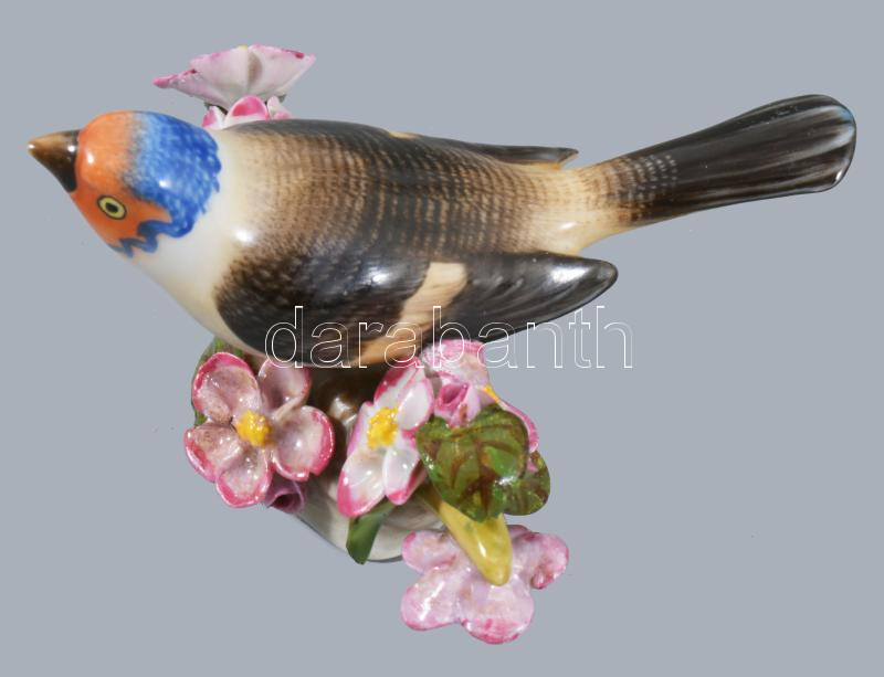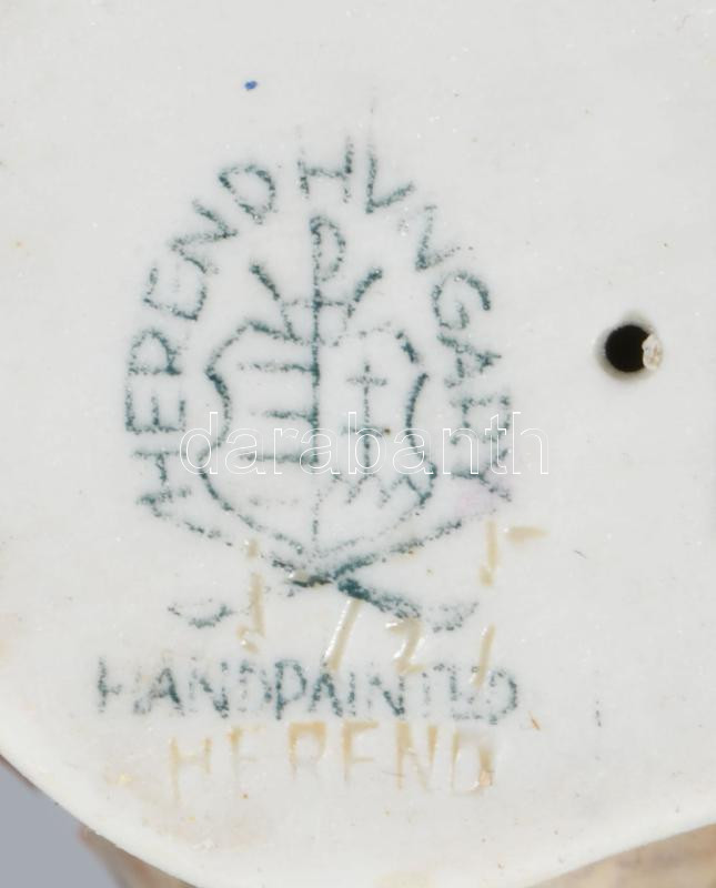 Herendi madár virágos ágon, jelzett, restaurált, 12x11 cm