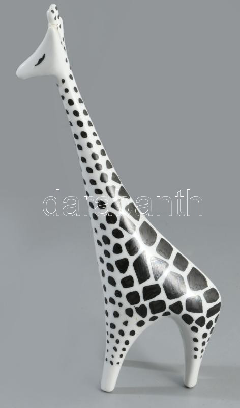 Hollóházi art deco zsiráf. Terv.: Grunda Károly. Kézzel festett, jelzett, füle ragasztott, m: 20 cm