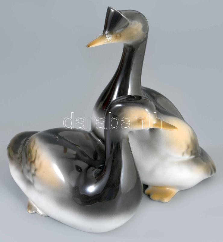 Hollóházi vadkacsapár Kézzel festett, jelzett, hibátlan m: 23 cm