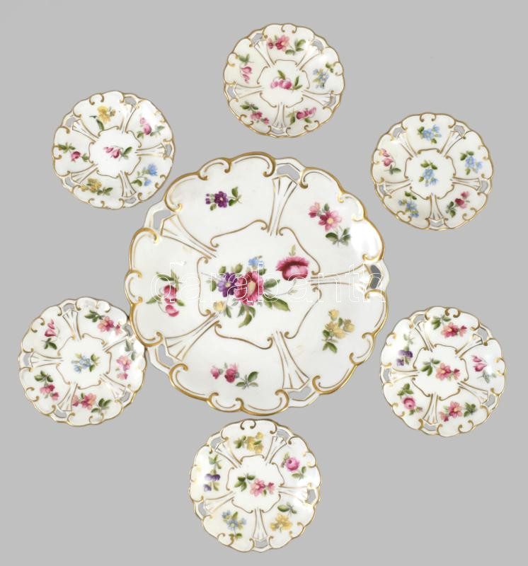 Ilmenau kis süteményes készlet. Kézzel festett, jelzett, hibátlan d: 8 cm, 18 cm