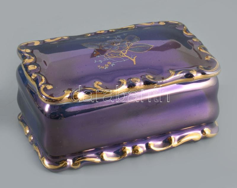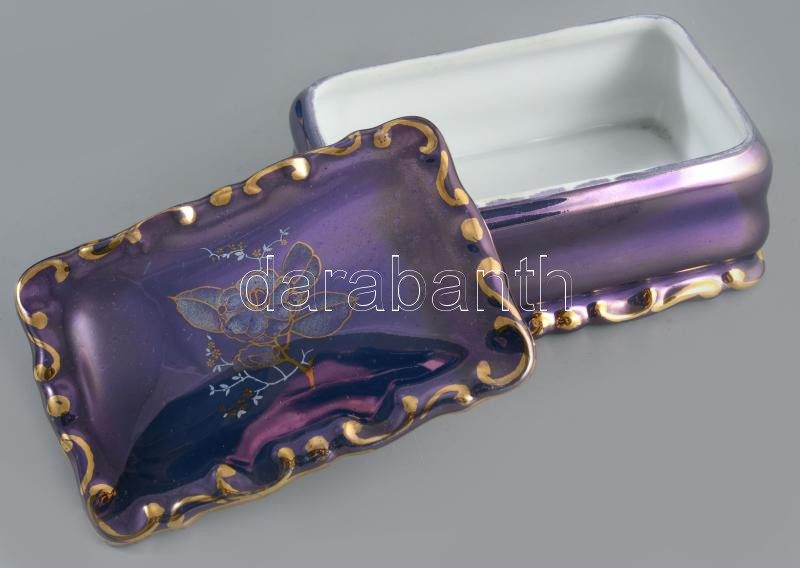 Iris Szeged lüsztermázas ékszertartó, jelzett, 9x6 cm
