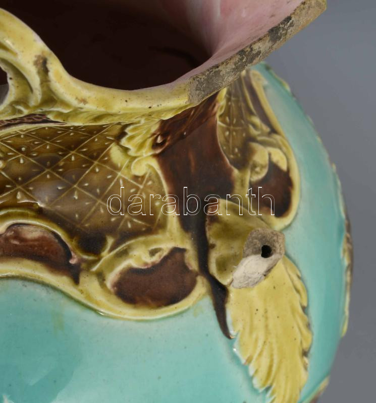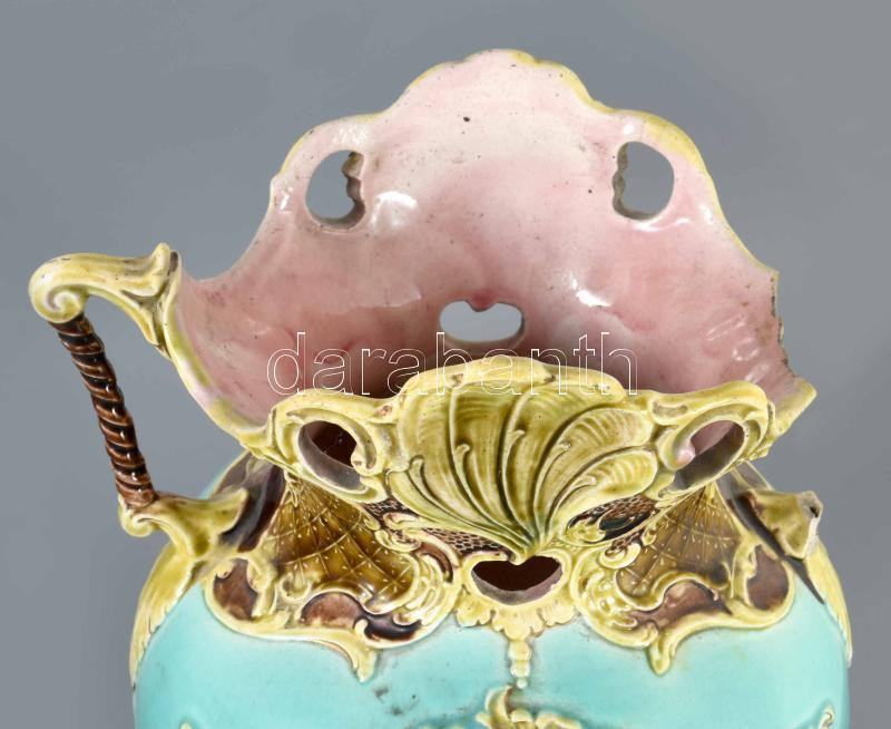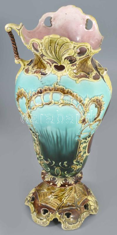 Josef Strnact szecessziós váza, fülhiánnyal, jelzett, restaurált, m: 38 cm