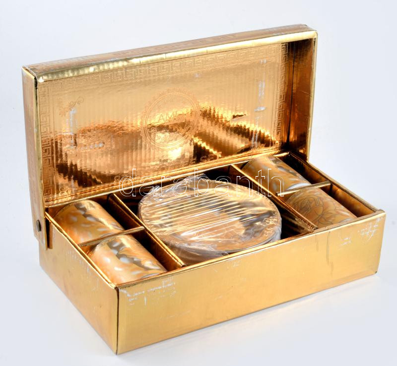 Modern 4 személyes kávés készlet, dobozában.