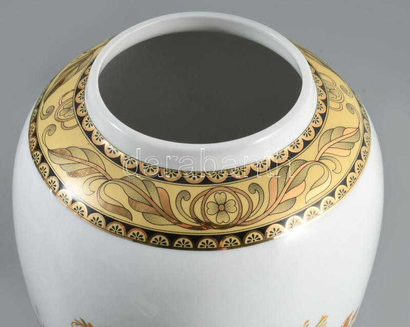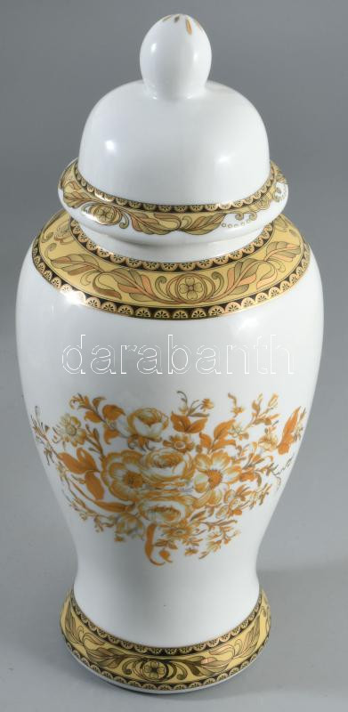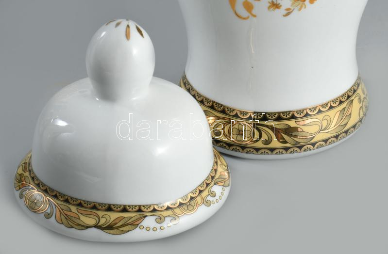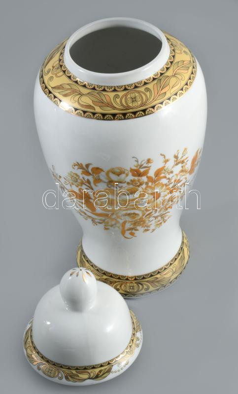Német aranyozott fedeles váza, számozott, hibátlan, m: 30 cm
