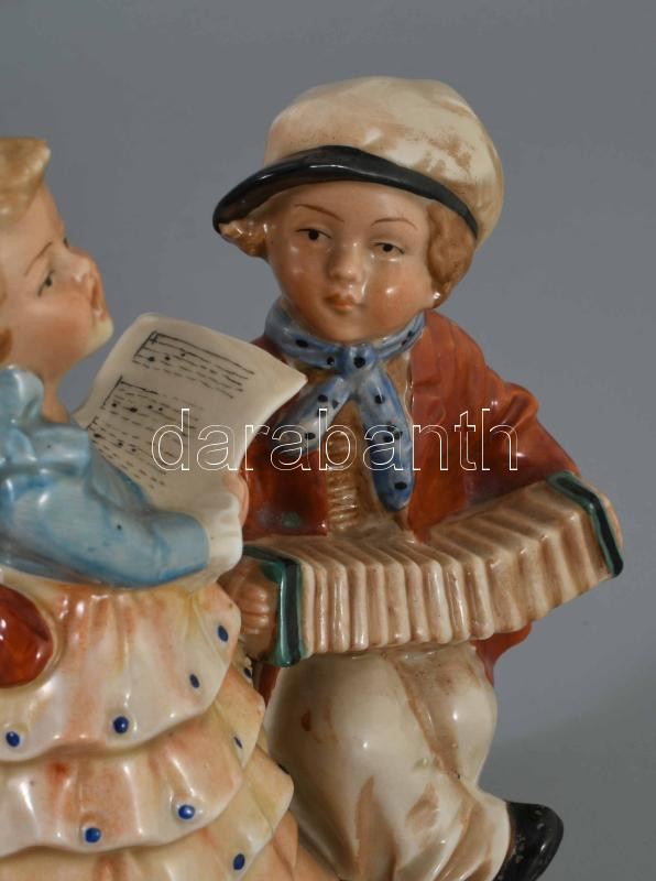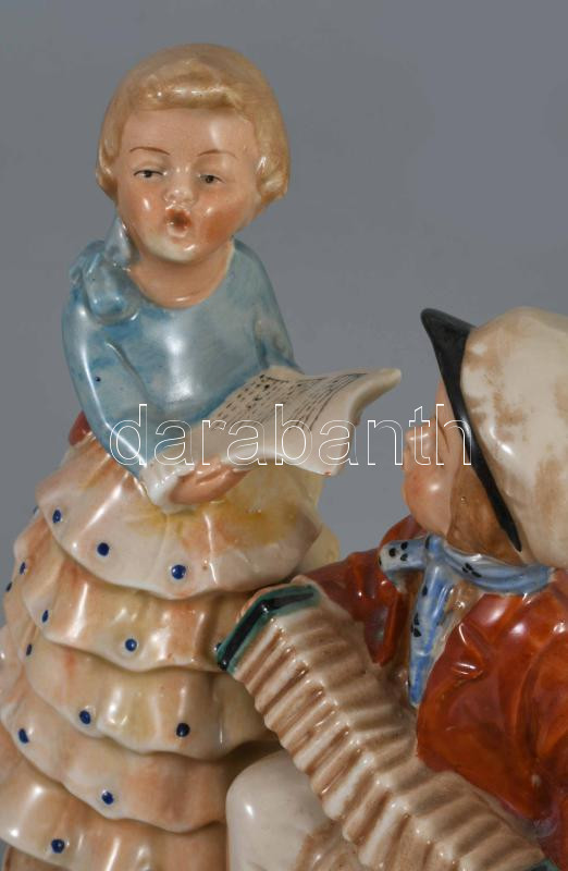 Régi német éneklő pár porcelán figura, jelzett, hibátlan, m: 15 cm