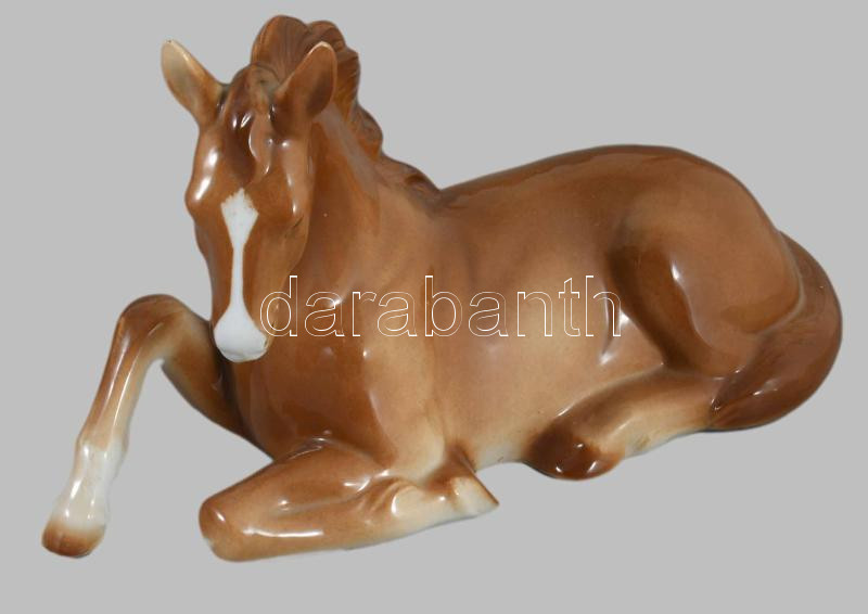 Sorszámozott német pihenő ló figura, hibátlan, 23x14 cm