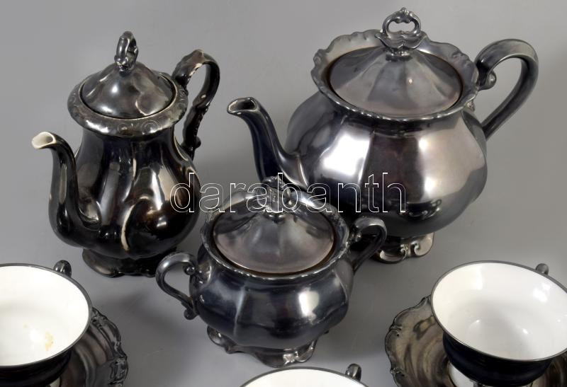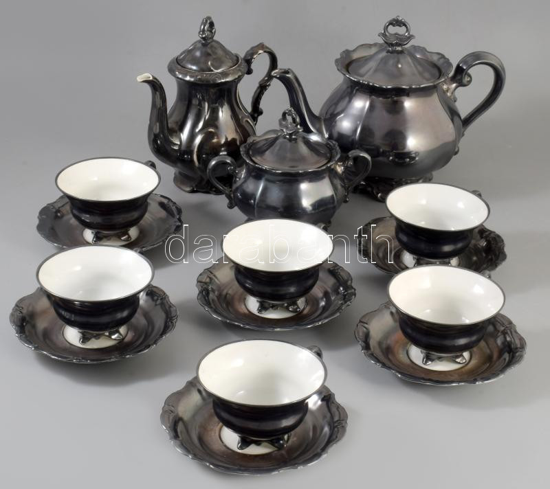 Waldershof antik ezüstözött 14 részes teás készlet. Jelzett, kopással, tejkiöntő nélkül, egy extra Bavaria kiöntővel.