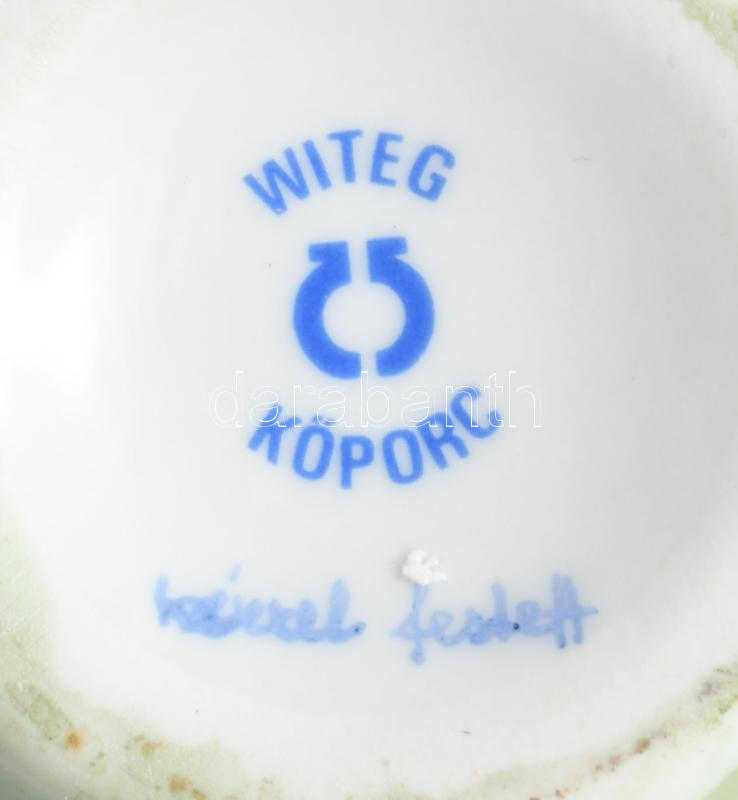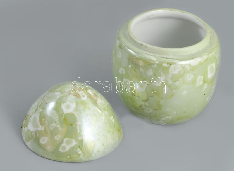 Witeg Kőporc Kőbányai Porcelángyár lüsztermázas ékszertartó, jelzett, hibátlan, m: 9 cm