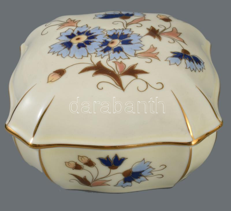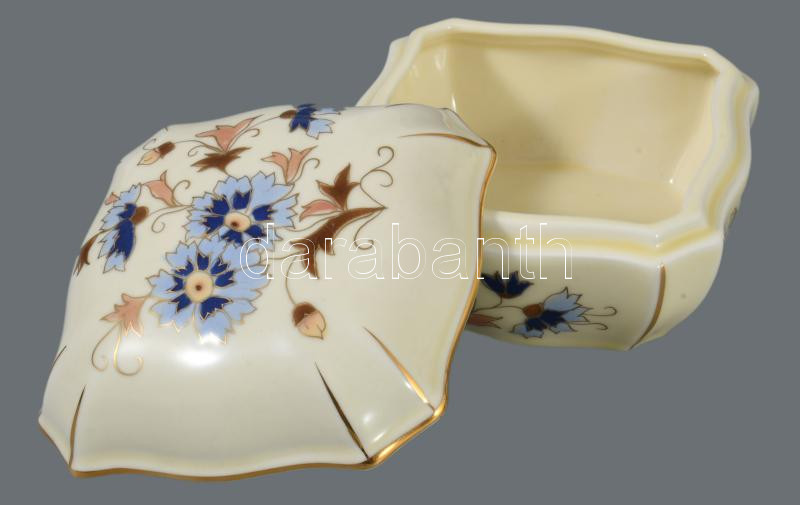 Zsolnay búzavirág mintás bonbonier. Jelzett, hibátlan, 10,5x10,5 cm
