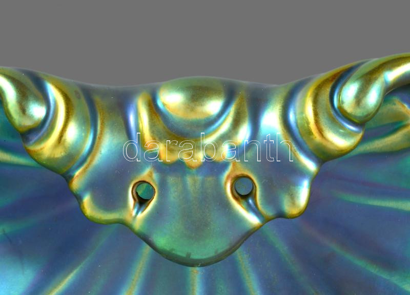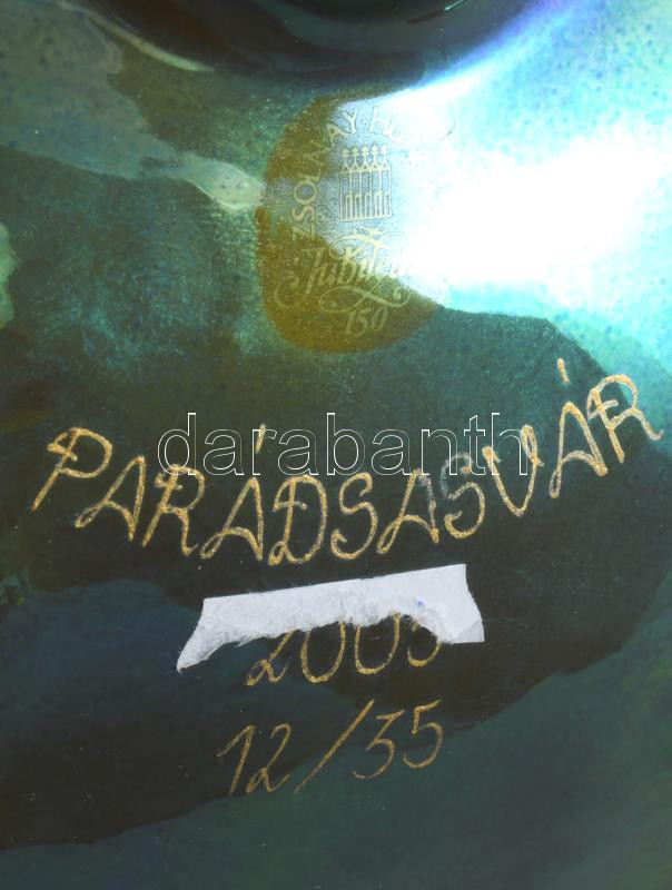 Zsolnay eozin mázas névjegykártyatartó, jelzett, alján Parádsasvári vésettel, 16x11 cm