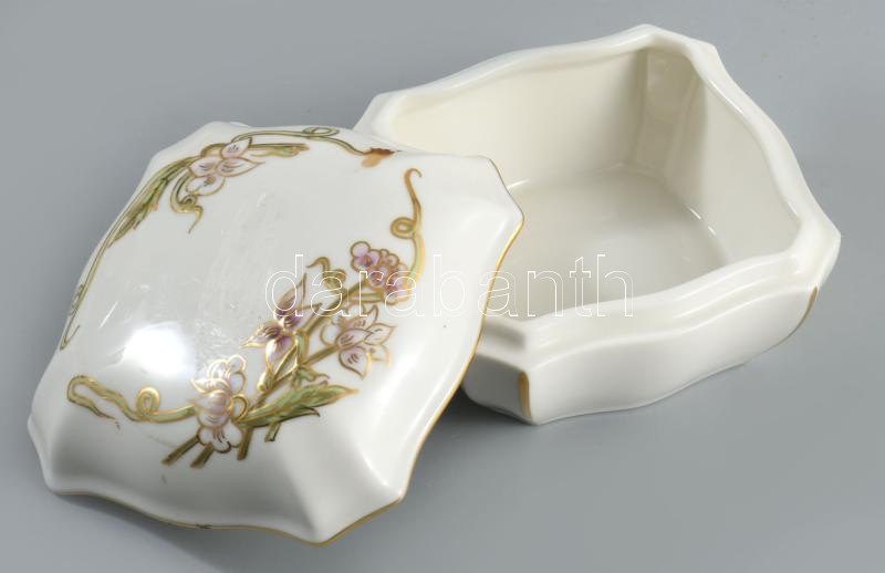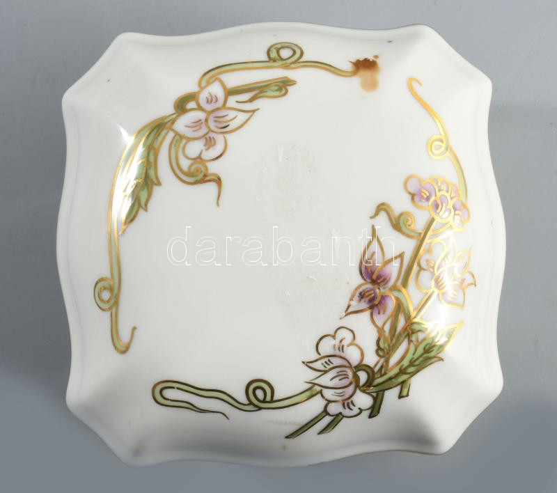 Zsolnay írisz mintás bonbonniere. Kézzel festett, jelzett, minimális kopással 11x11 cm