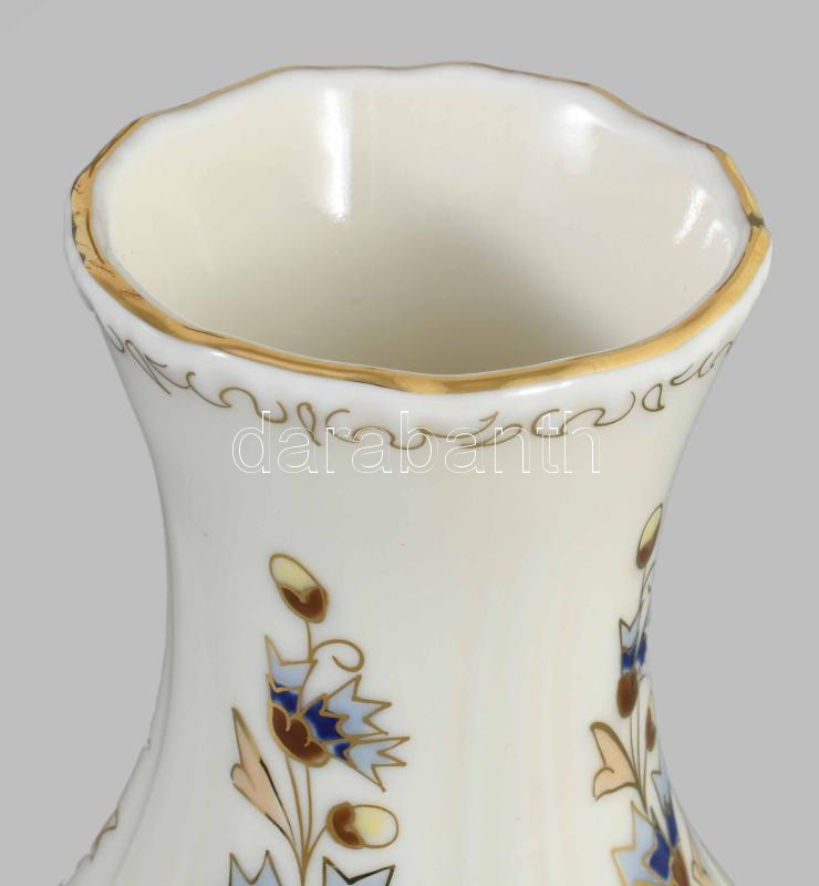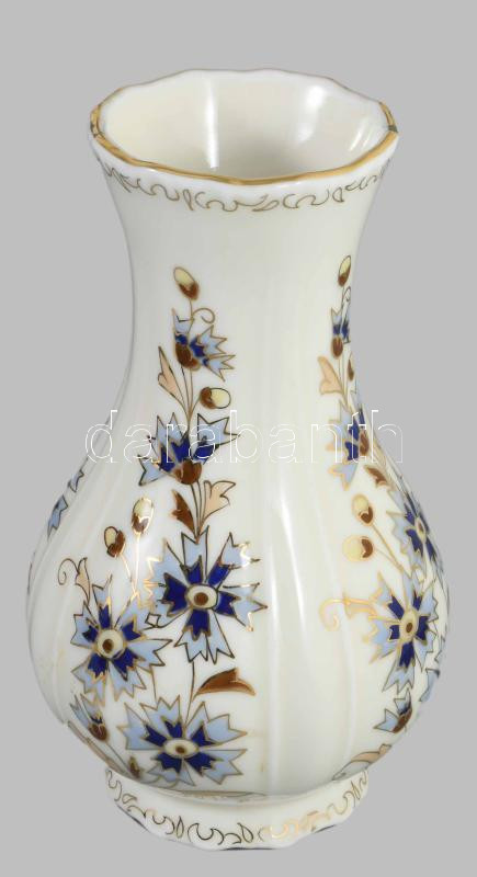 Zsolnay porcelán búzavirág mintás váza, kézzel festett, jelzett, hibátlan, m: 17 cm
