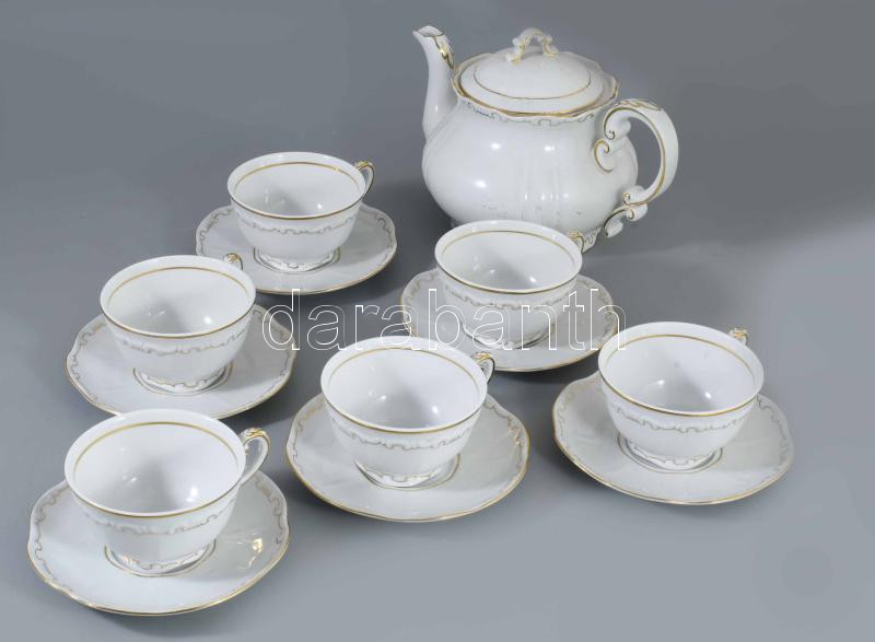 Zsolnay tollazott mintás teás készlet, tejkiöntő és cukortartó nélkül, hibátlan, jelzett.