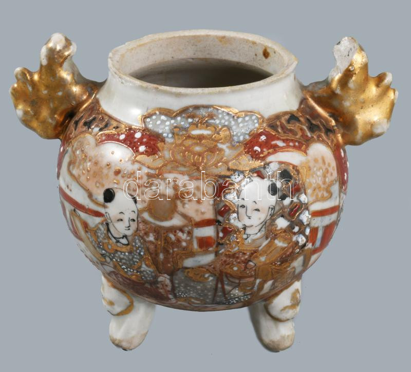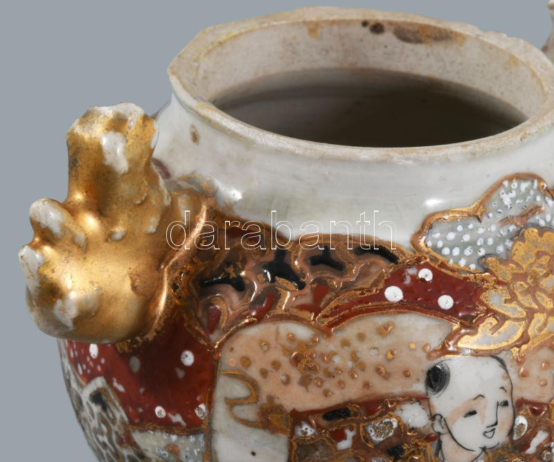 cca 1900 Japán satsuma edény, jelzés nélkül, sérüléssel, m: 8 cm