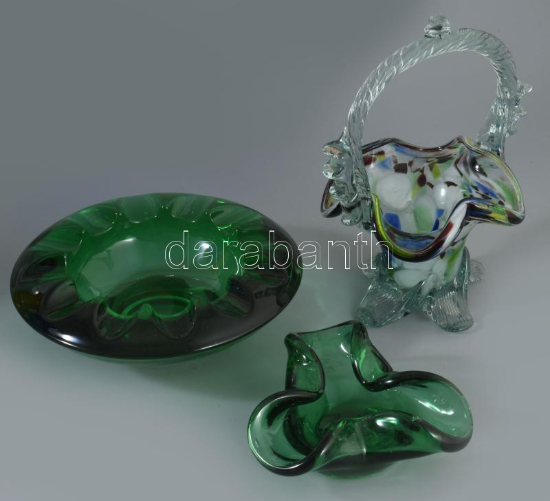 3 darab üveg asztaldísz, m: 17 cm alatt