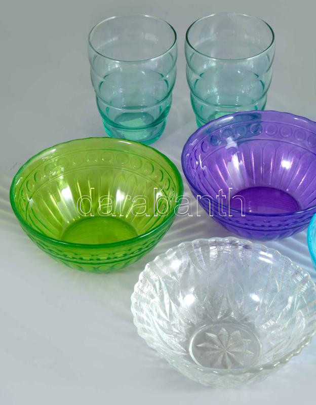 4 darab retro színes pohár m: 10,5 cm + 4 darab tálka d: 14 cm