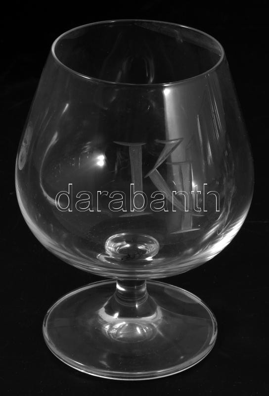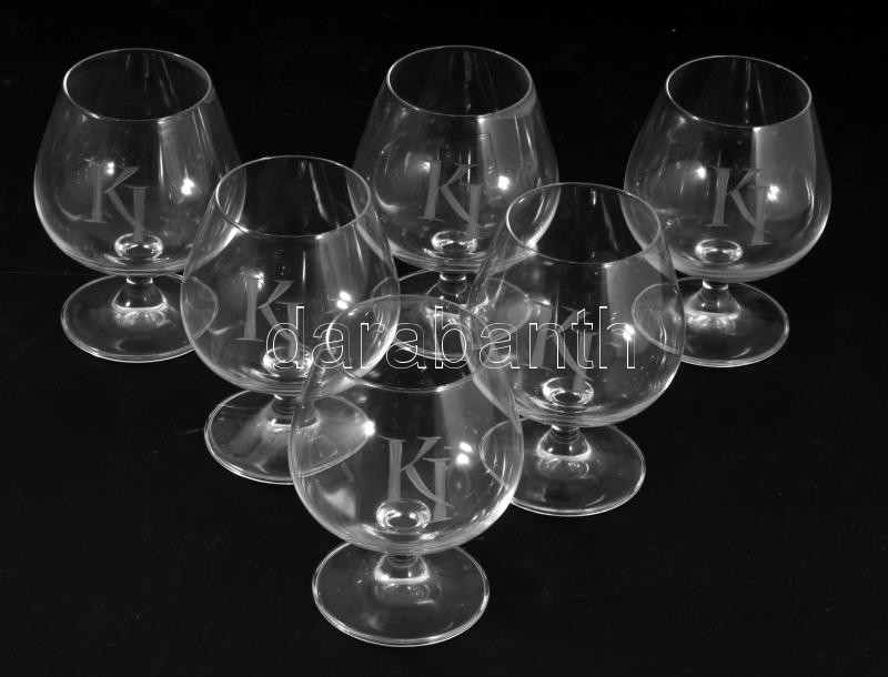 6 db konyakos pohár, vésett KI monogrammal, hibátlan 10 cm