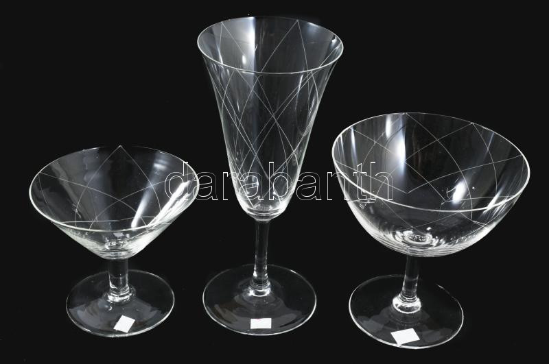 Antik 18 részes 3 személyes pohár készlet, mindegyik fajta pohárból 3 darabbal, m: 16 cm alatt