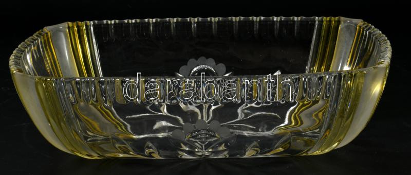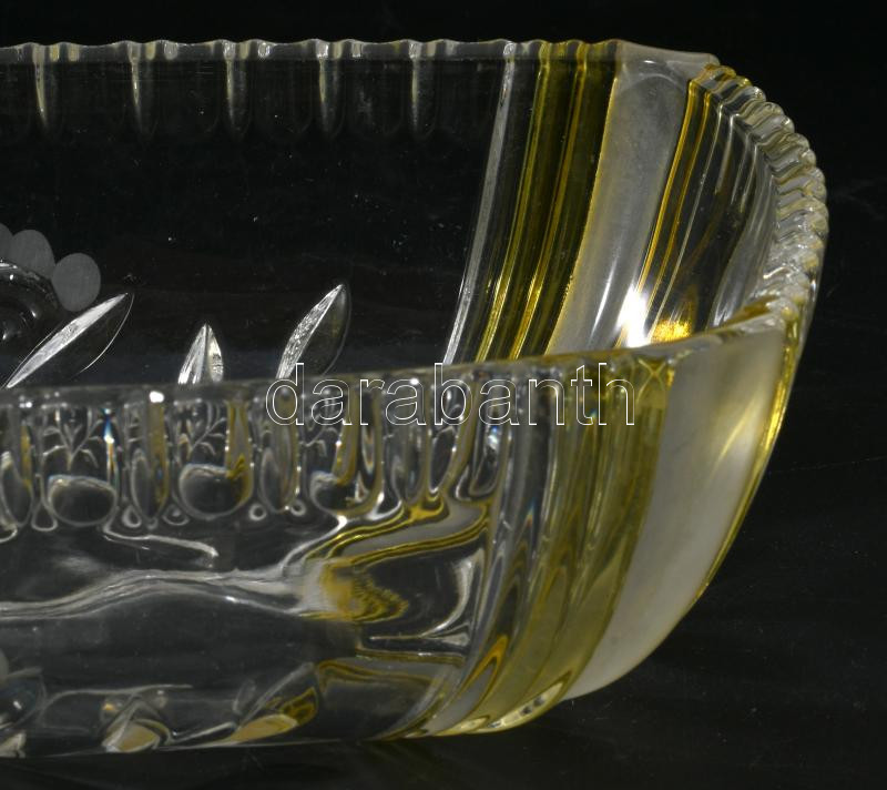 Antik kristály kínáló, köszörült és ezüstpácolt díszítéssel, 25x17x7 cm