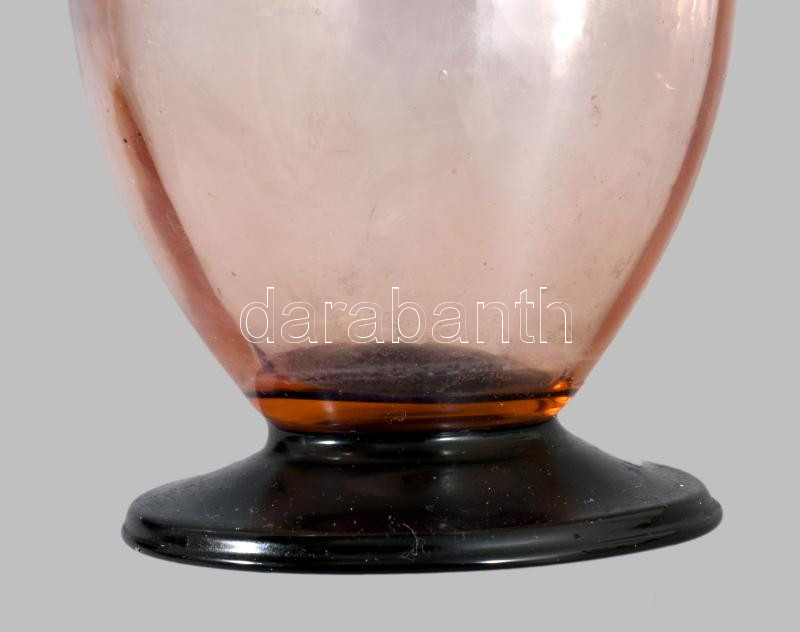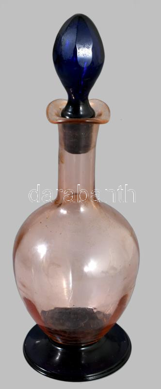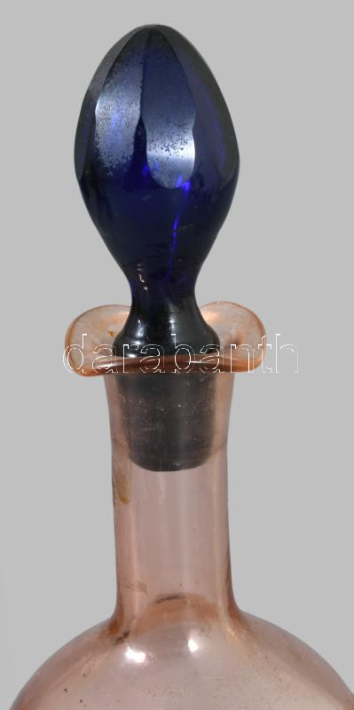 Antik likőrös üveg. Anyagában színezet hutaüveg, csiszolt dugóval, hibátlan 25 cm