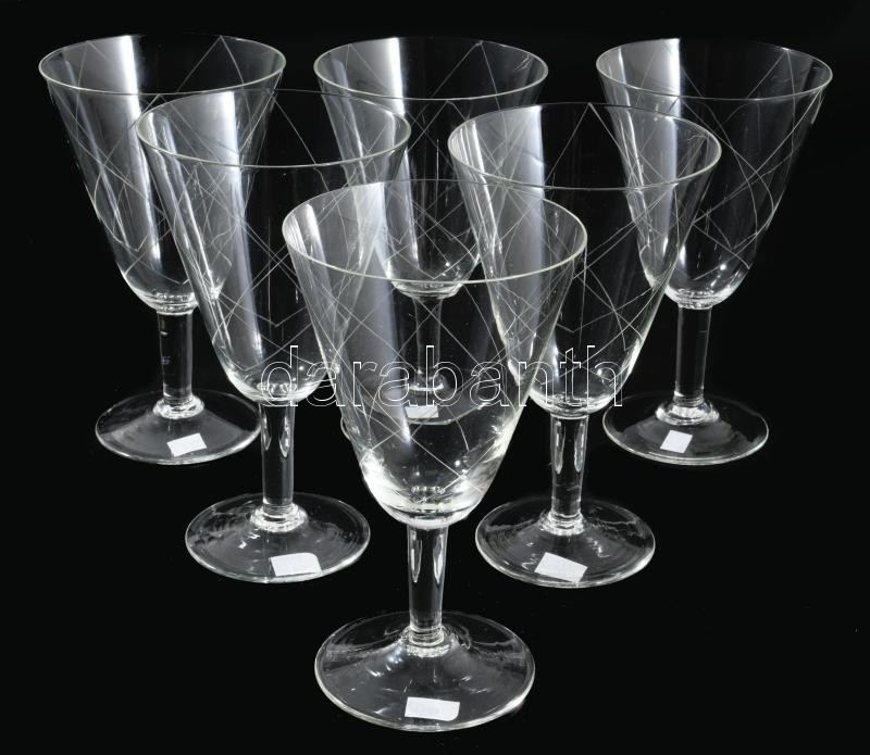 Antik talpas pohár készlet, 6 darab, hibátlan, m: 13,5 cm