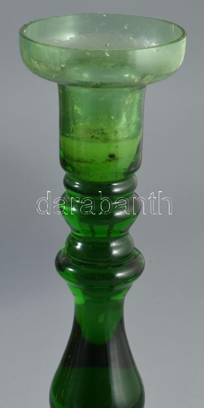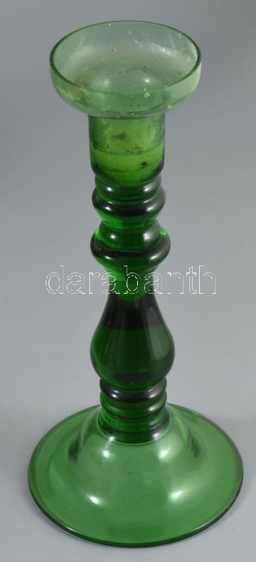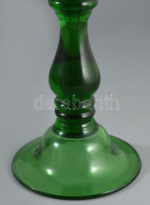 Anyagában színezett zöld üveg gyertyatartó, hibátlan, m: 26 cm