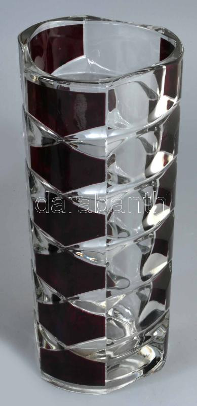 Francia design váza, bíborpácolt részekkel, jelzett, m: 24,5 cm