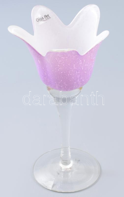 Glas Art kétrétegű talpas mécsestartó. Jelzett, hibátlan, m: 19 cm