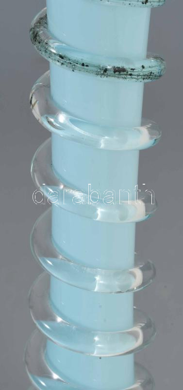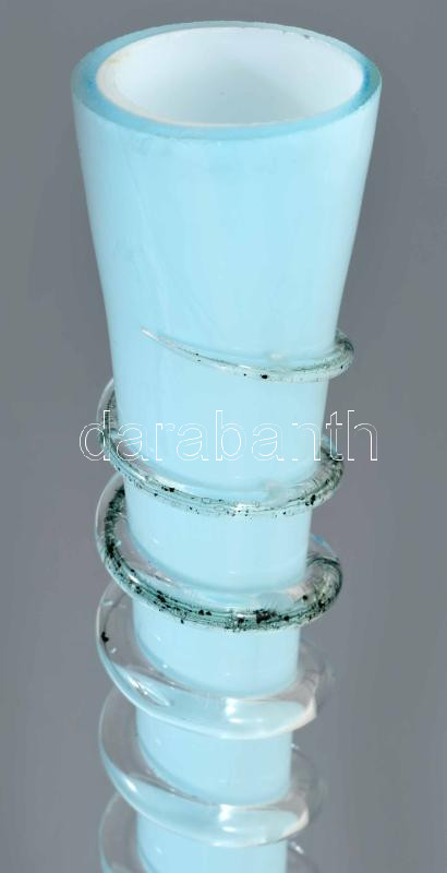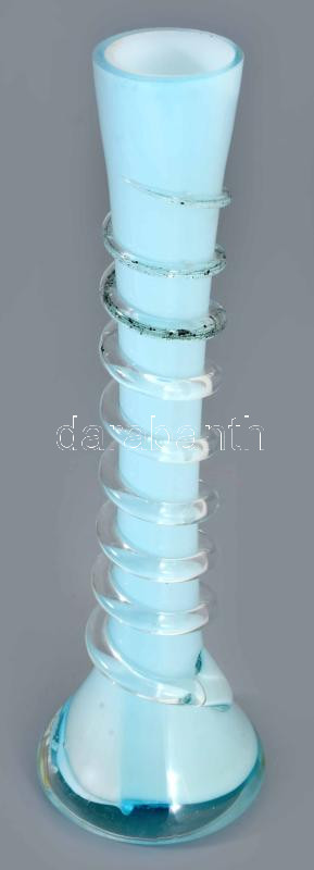 Kétrétegű kék üveg váza szálrátétes díszítéssel, hibátlan, m: 20,5 cm