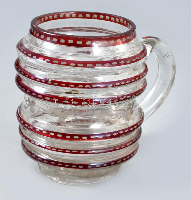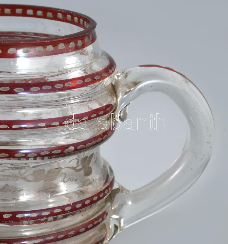 Kúrapohár. cca 1850, bíborpácolt és csiszolt díszítésekkel, minimális pattogzással, m: 8,5 cm